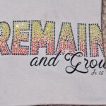 100 % cotton Tshirt. A shout out to Jn 15:4 Remain in me, as I also remain in you. No branch can bear fruit by itself; it must remain in the vine. Neither can you bear fruit unless you remain in me.